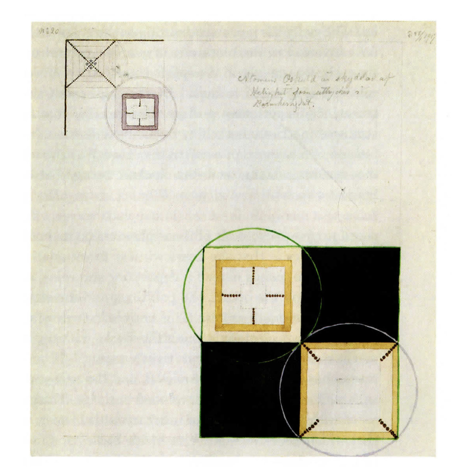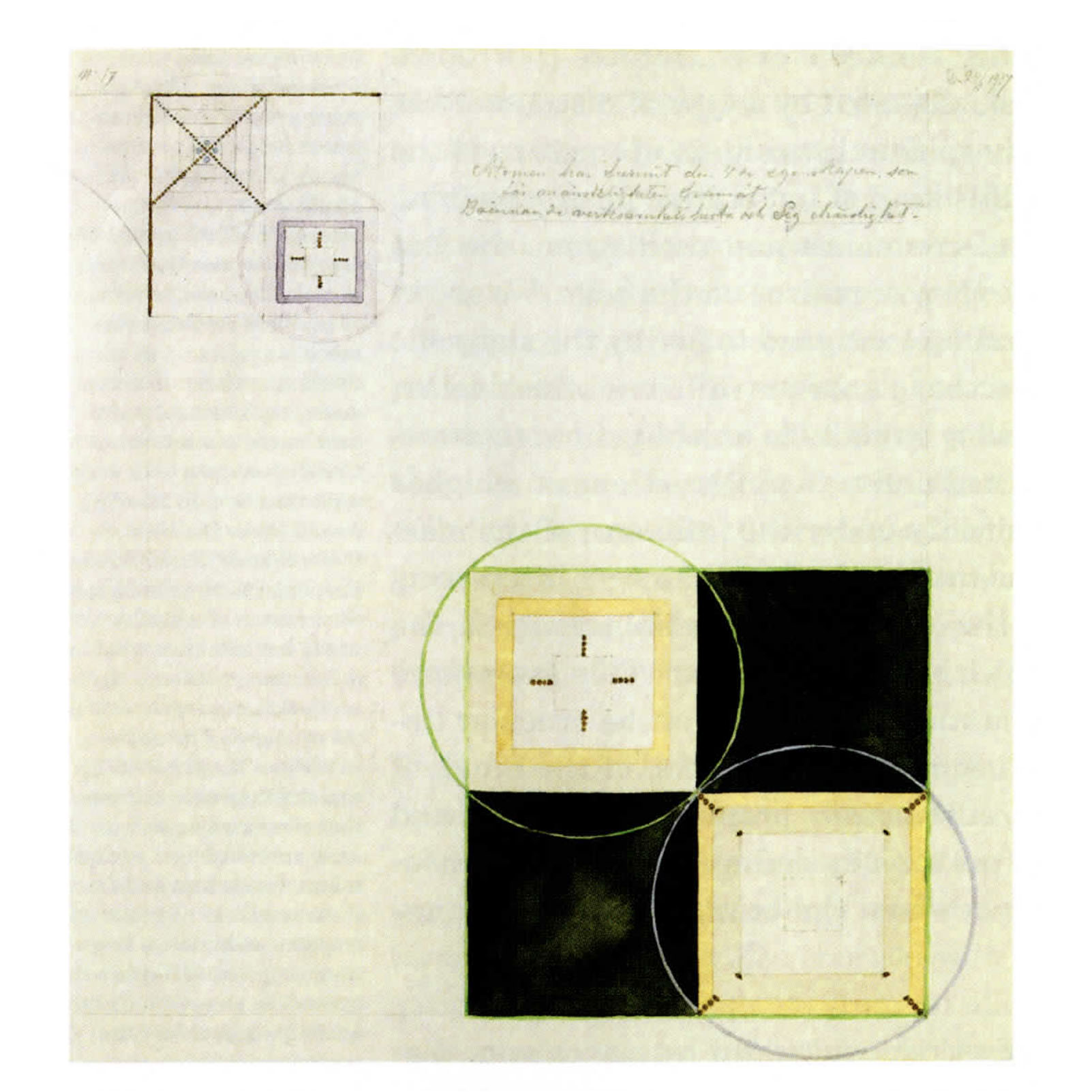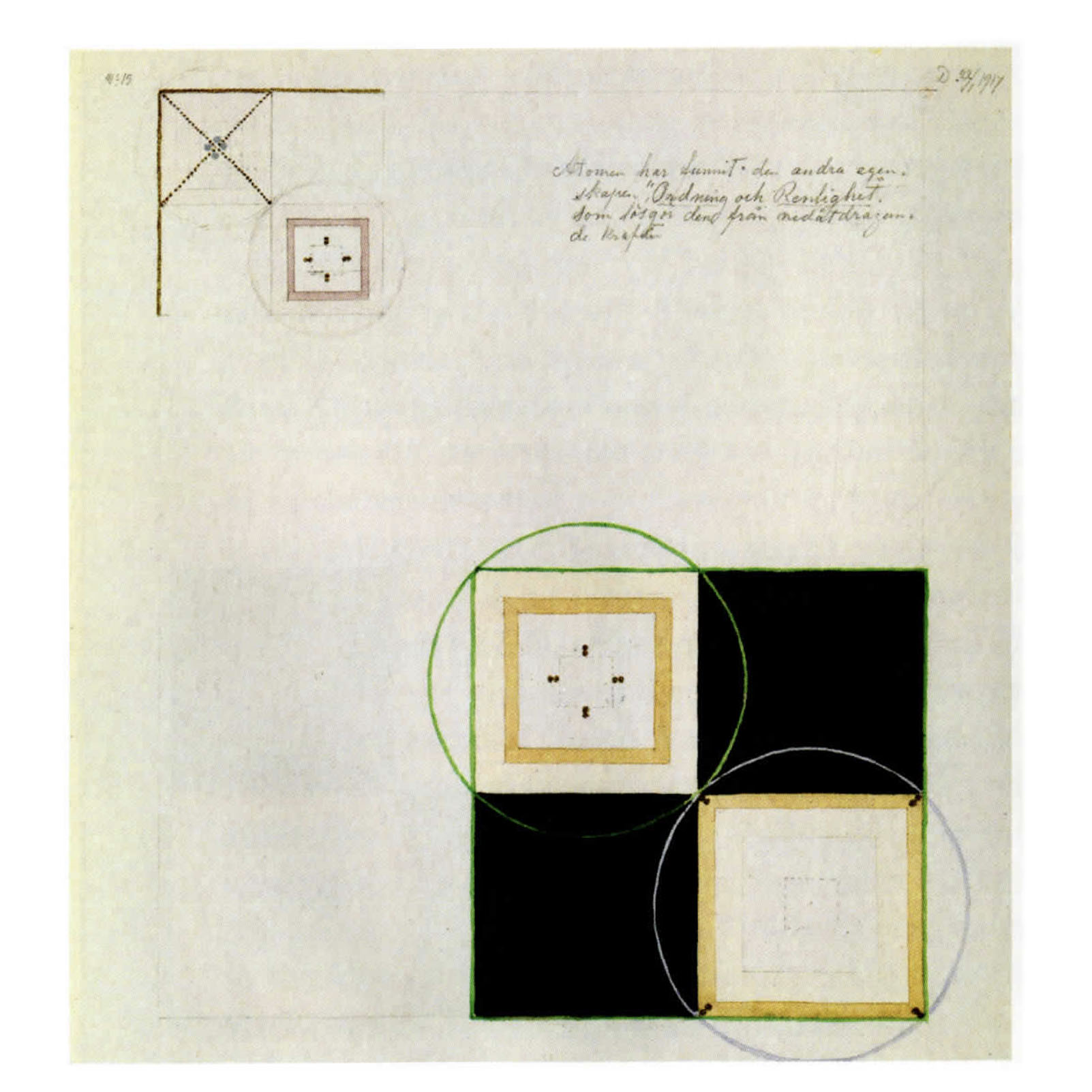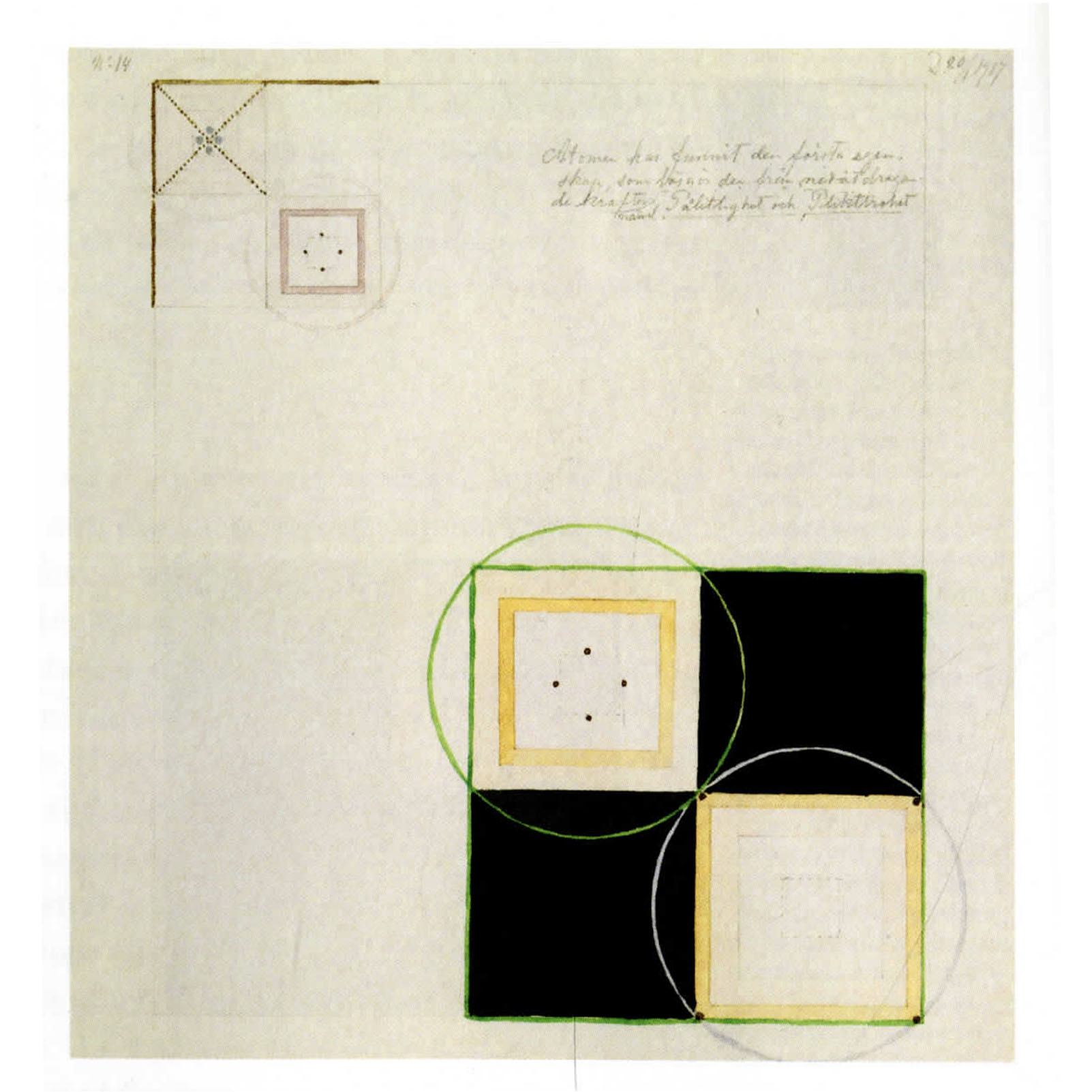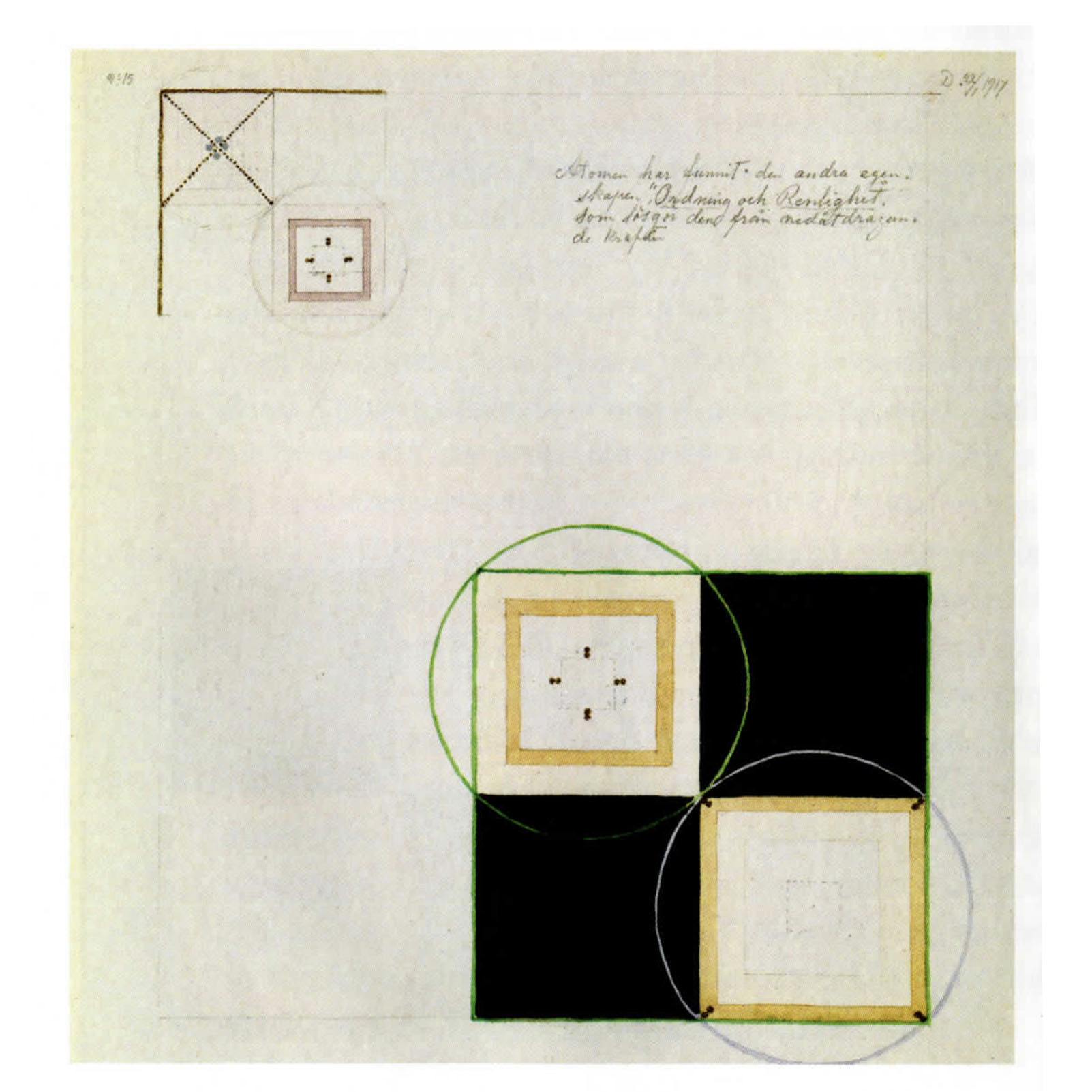 HILMA AF KLINT, Atom Series, No. 15: "The atom has found its second quality-Orderliness and Cleanliness, which release it from the forces that pull it down," January 1917
