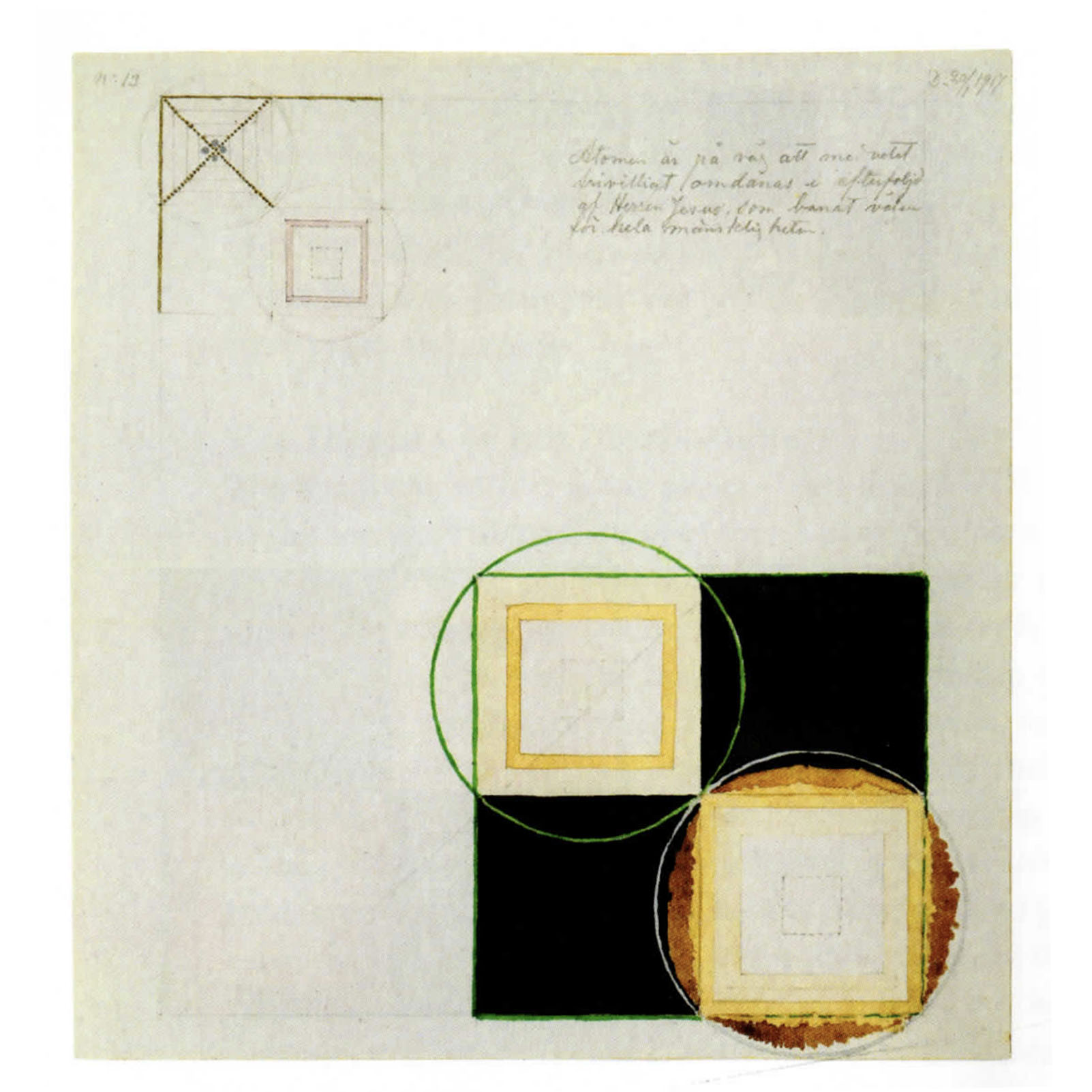 HILMA AF KLINT, Atom Series, No. 13: "The atom is on its way to deliberately, voluntarily being consciously and voluntarily transformed in accordance with The Lord Jesus, who cleared the way for the whole of mankind," January 1917